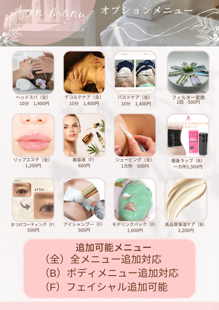 | セットプレミアムケア (90分) | 19,800円(税込) |